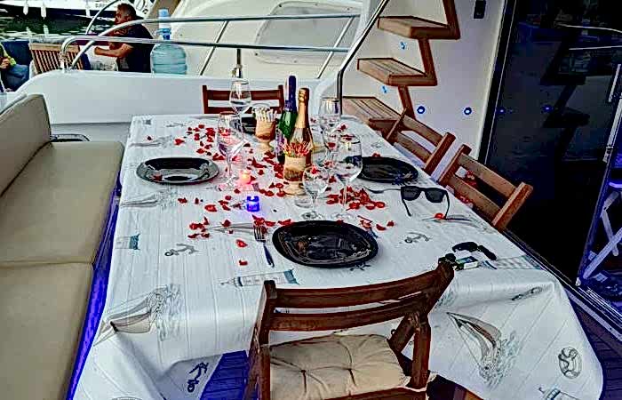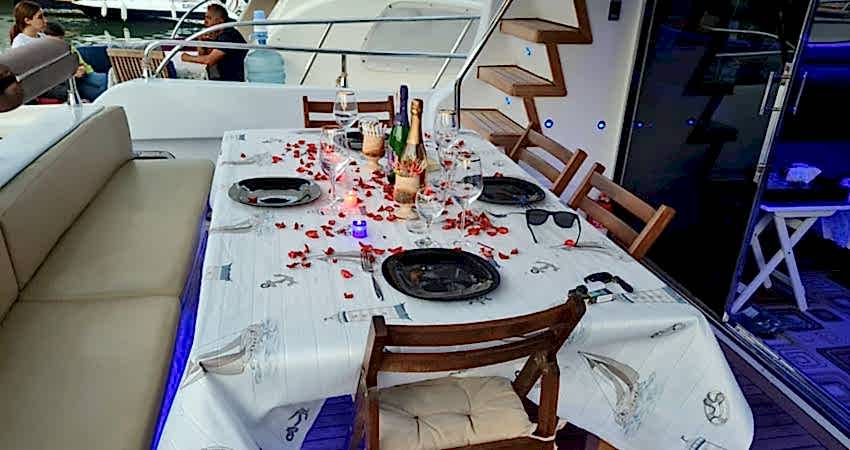 ✓13 Metre Uzunluk ✓Güverte Duşu ✓Yemek Masası ✓Yüzme Merdiveni ✓Güneş Yatağı ✓Gölgelik Alan