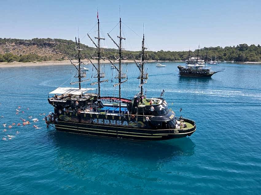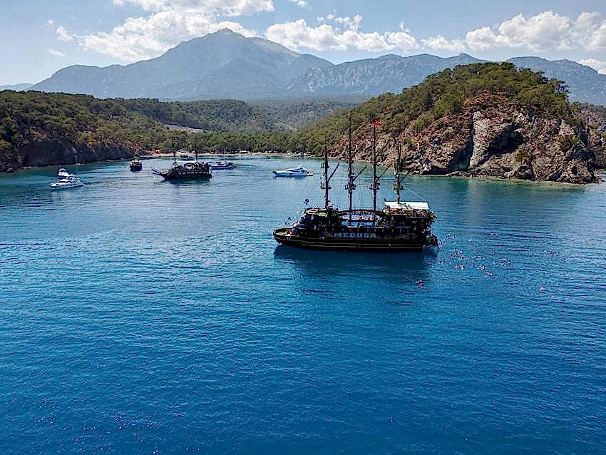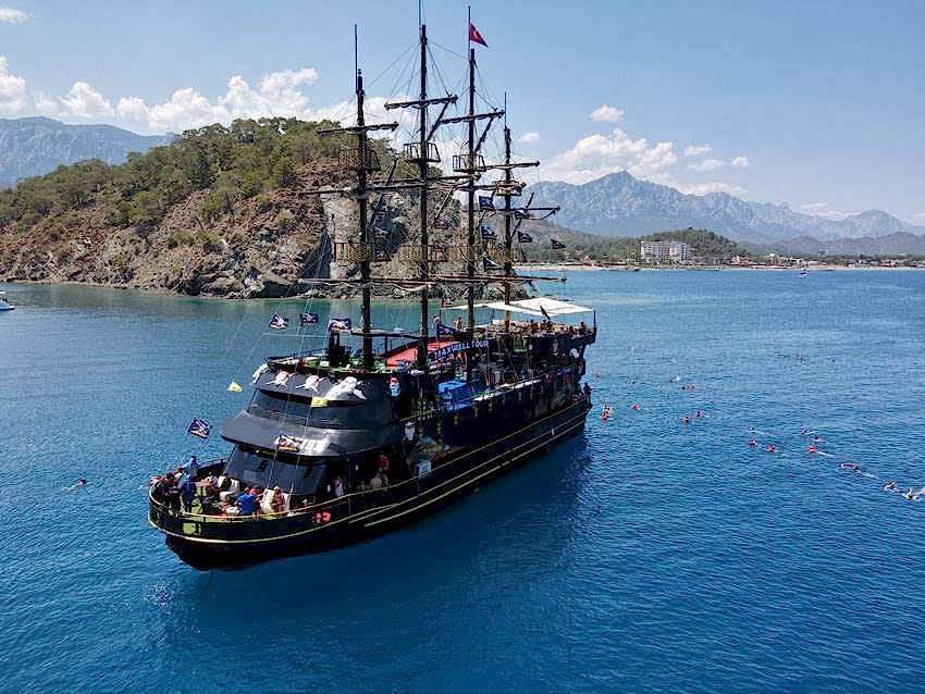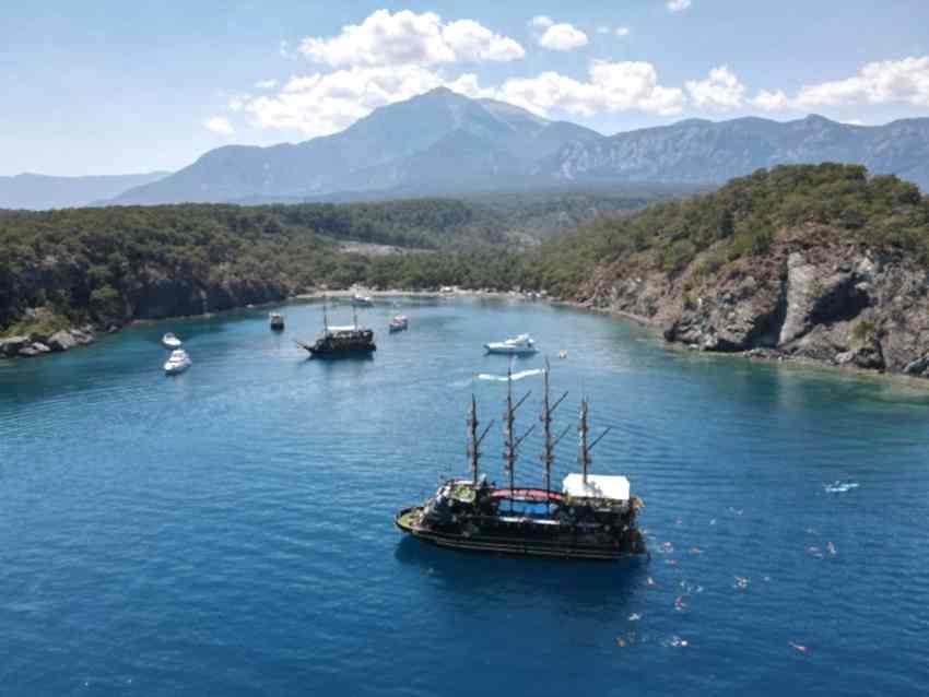 Muhteşem koylarda yüzme molaları: Antalya korsan tekne turu sırasında, bölgenin en güzel koylarında mola vereceğiz ve bu molalarda yüzmenin keyfini çıkarma fırsatı bulacaksınız. Toplam 3 farklı koyda yüzme molası veriyoruz.