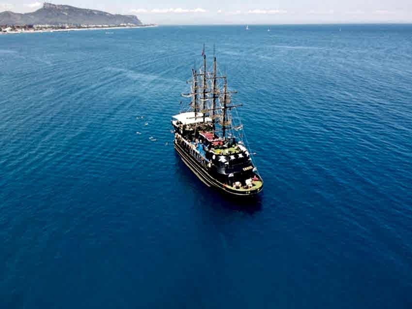 Huzur veren ve heyecan verici korsan tekne turu gezisine katılarak Antalya’daki tatilinizi unutulmaz kılabilirsiniz. Transfer süreci sabah saatlerinde başlamaktadır. Konforlu ve lüks transfer aracımız sizi Antalya’daki otelinizden alacak ve Kemer limanına getirecek. Bu transfer yaklaşık bir saat sürecektir. Limana vardığınızda korsan teknemizin muhteşem tasarımı sizi çok etkileyecek. Bu çok güverteli tekne, estetik bir korsan tasarımına sahiptir ve deneyiminizi keyifli kılmak için tasarlandı. Bay ve bayan tuvaletler, güneşlenmek isteyenler için konforlu salonlar ve şezlonglar, barlar ve son teknoloji ses sistemi bulunmaktadır.