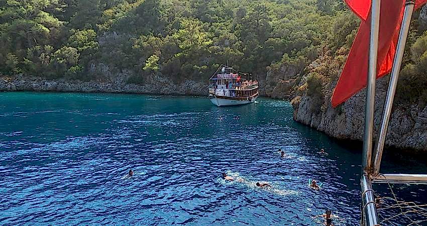 Yüzme molası olarak verdiğimiz molalarımız birçok farklı alan gezdiğimiz için yaklaşık olarak 30 ile 45’er dakika olarak değişiklik göstermektedir. Bu tekne gezimiz boyunca birbirinden güzel 7 farklı alanda yüzme ve fotoğraf molaları vererek tüm güzellikleri görün ve bu keyfi tadın istiyoruz.